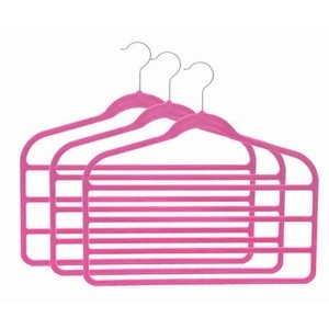 With four soft coated bars for pants, these slim-line hangers are a space-saving dream! Great for fitting extra traveling clothes into a garment bag, these durable hangers hold up under constant use. The coating grips pants to prevent slipping and wrinkling.